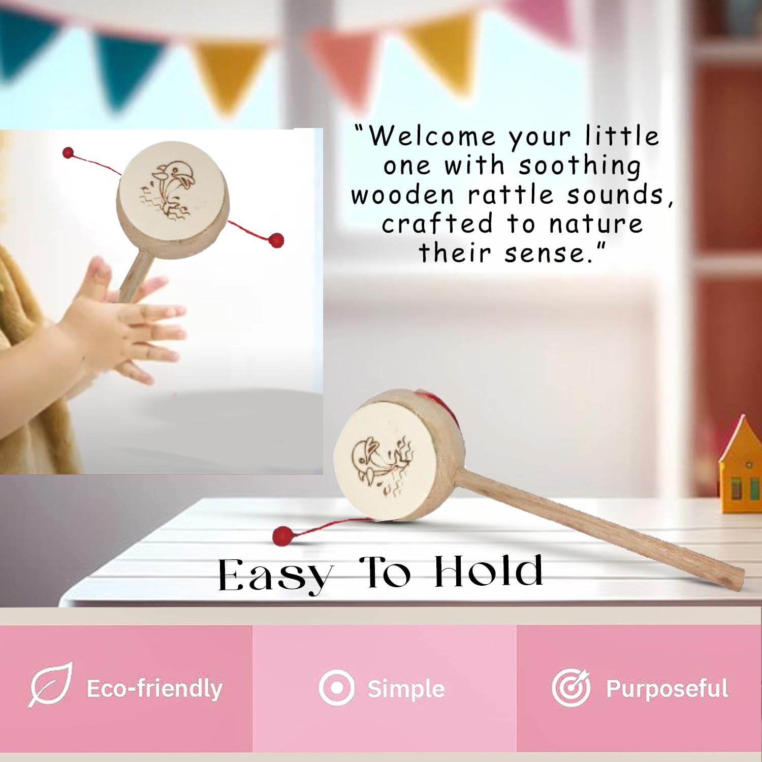 LittleLoot Handcrafted Wooden Rattle Drum Toy for Kids – Eco-Friendly, Safe, and Colorful Damru for Early Learning, Sensory & Auditory Development – Ideal Gift for Babies & Toddlers