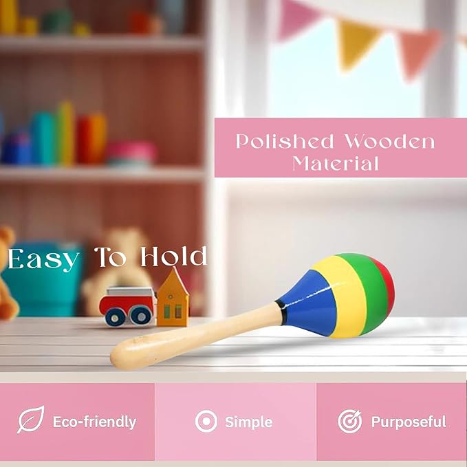 Introduce your baby to joyful sensory play with our Wooden Baby Rattles Activity Toy, specially handcrafted to support infant development. Made from safe, eco-friendly wood and finished with non-toxic, child-safe paints, this rattle is designed as essential baby activity gear to stimulate auditory and tactile senses. The colourful design captures your baby’s attention, encouraging exploration and interaction, while the gentle sound produced promotes sensory engagement. Lightweight and perfectly sized for tiny hands, this rattle helps develop fine motor skills and hand-eye coordination during early play. Whether for your own child or as a thoughtful baby shower gift, this wooden rattle is a safe, educational, and fun addition to any baby’s activity collection. Support your little one’s growth with this beautifully crafted sensory toy designed for early developmental milestones.