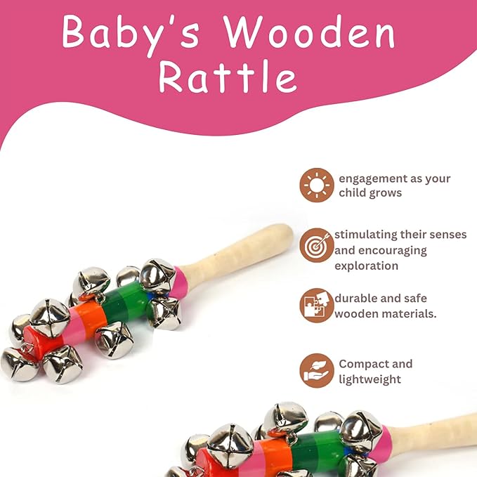 Enhance your baby’s playtime with our Handcrafted Wooden Rattle with Bell, specially designed for infants and toddlers. Made from high-quality, eco-friendly wood and finished with safe, non-toxic paints, this rattle offers a safe and stimulating sensory experience. The gentle bell sound captures your baby’s attention, fostering auditory development and encouraging exploration. Lightweight and easy to hold, it fits perfectly in tiny hands, supporting fine motor skills and hand-eye coordination critical for early growth. Ideal for use in activity centres or standalone play, this wooden rattle is a timeless toy that combines fun with educational benefits. It also makes a thoughtful gift for baby showers and birthdays.